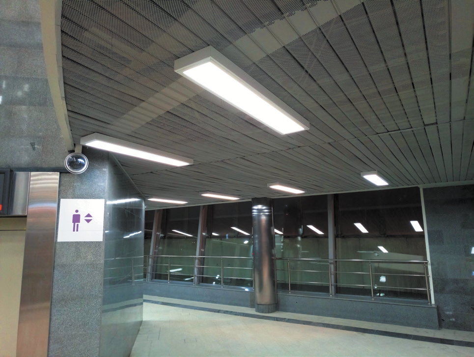 Проект охватывает несколько ключевых участков: входные группы, вестибюли, платформы и переходы. Для каждой зоны были подобраны индивидуальные решения с учетом эксплуатационных условий, требований к освещенности и архитектурных особенностей пространства.