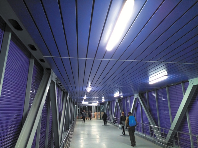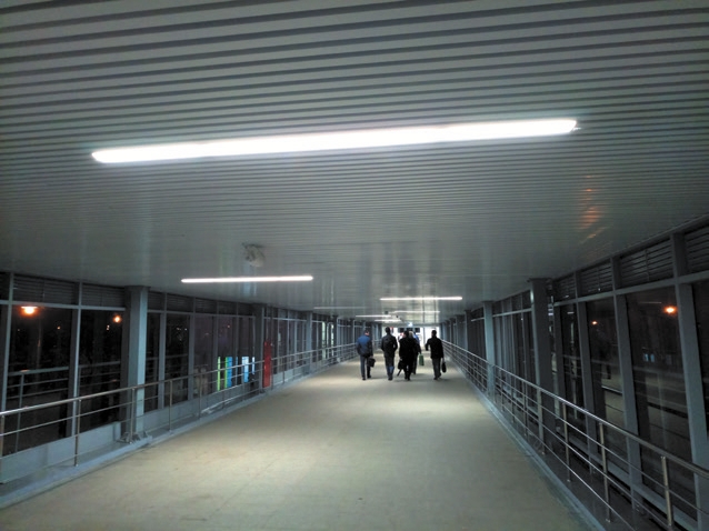 В переходах реализованы линейные световые системы, разработанные индивидуально под проект. Они формируют непрерывные световые линии, обеспечивая равномерное освещение и современный визуальный стиль пространства.