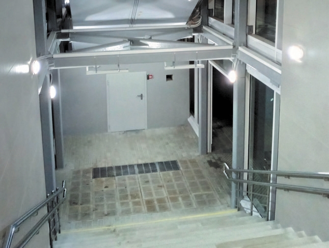 Во внутренних пространствах вестибюлей реализовано равномерное и мягкое освещение с минимальным уровнем пульсации (≤1%), что обеспечивает комфортное восприятие света и снижает нагрузку на зрение.