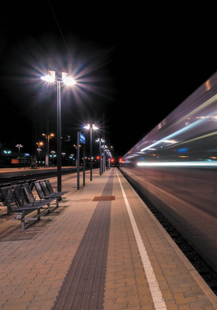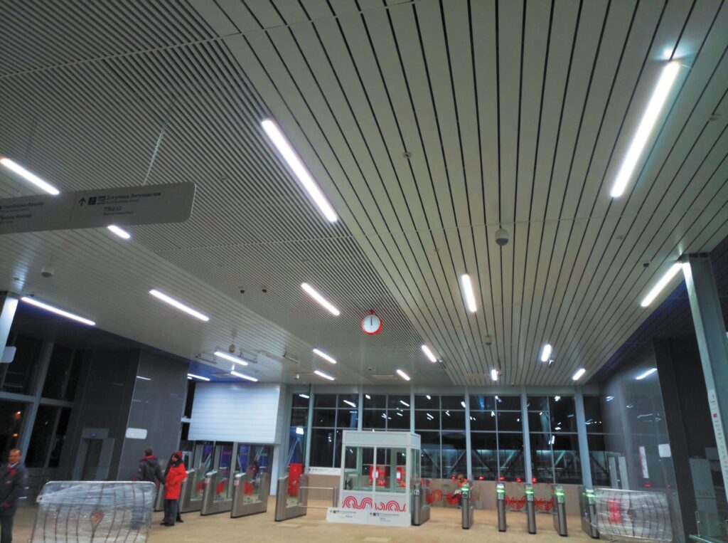 Для освещения платформ были выбраны надежные светодиодные светильники с косинусной кривой силы света, обеспечивающие равномерное распределение освещения по всей зоне.